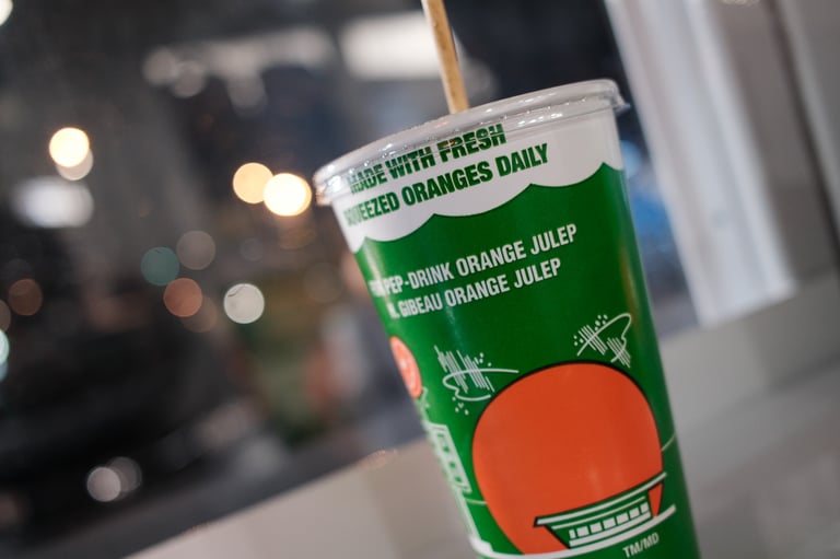 The evening softened into golden tones as we grabbed ice cream at Dairy Queen, that simple taste of summer that never gets old. And to close the night, a Montreal classic: the glowing dome of Orange Julep, standing like a bright memory against the city lights.