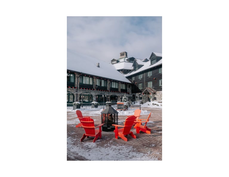 Every corner of Montebello felt timeless — the wooden lodges, frozen lakes, and gentle light painting everything in soft color. It’s one of those places where you slow down without meaning to, where every breath of cold air feels grounding.