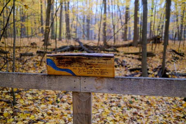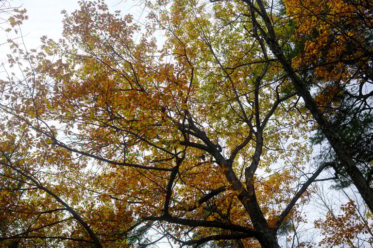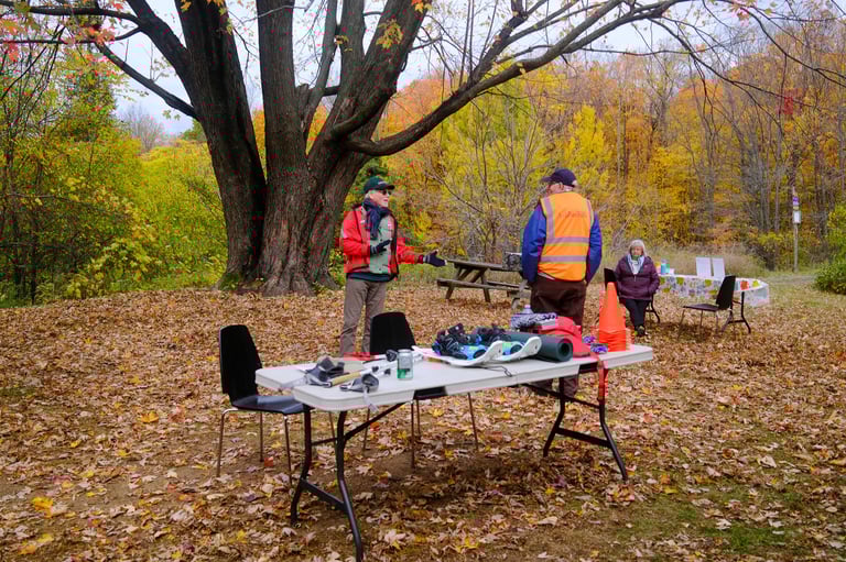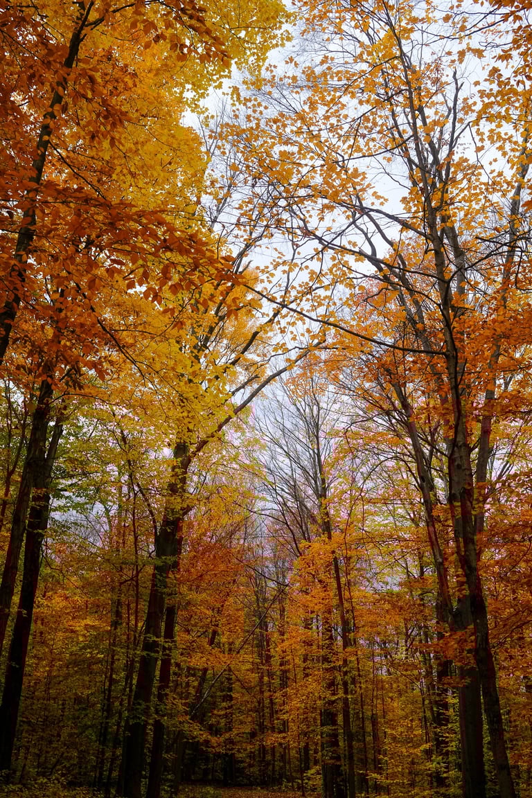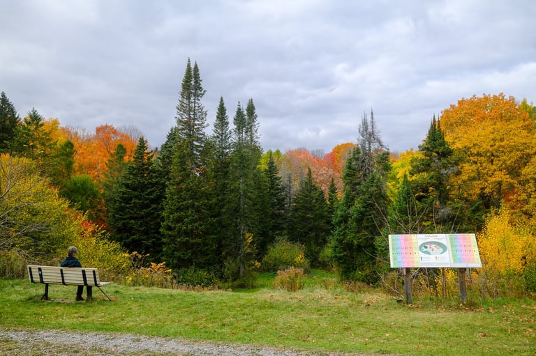 Everywhere I turned, there was something to capture: the golden canopy above, the laughter by the Sugar Shack, the way sunlight fell across the path leading to Chalet Pruche where the history exhibit was set up. Even the small details — warm apple cider steaming in the cold air, or the texture of fallen leaves underfoot — felt like gentle reminders of how nature anchors this community.