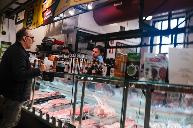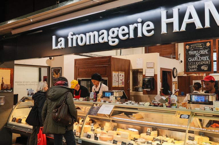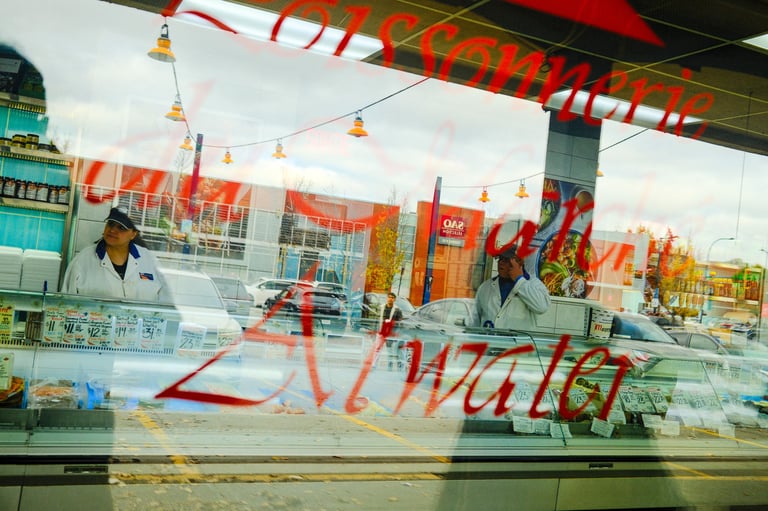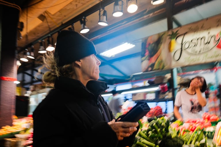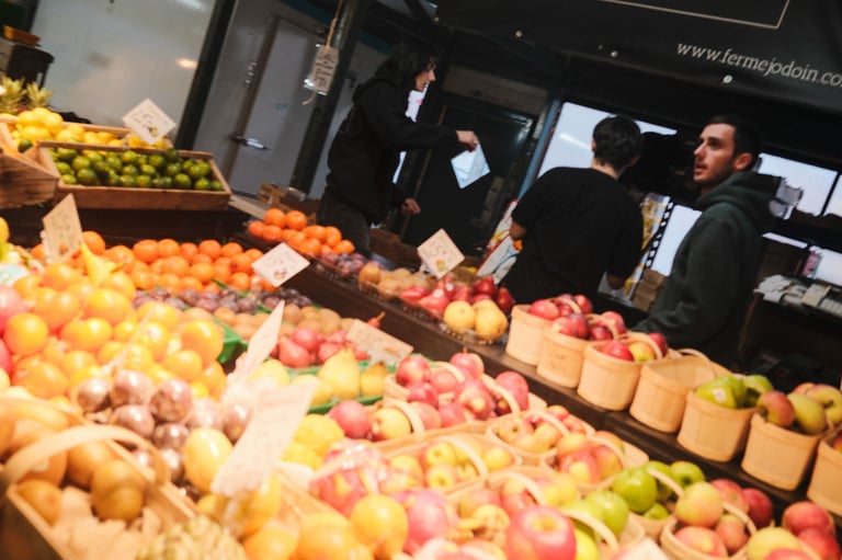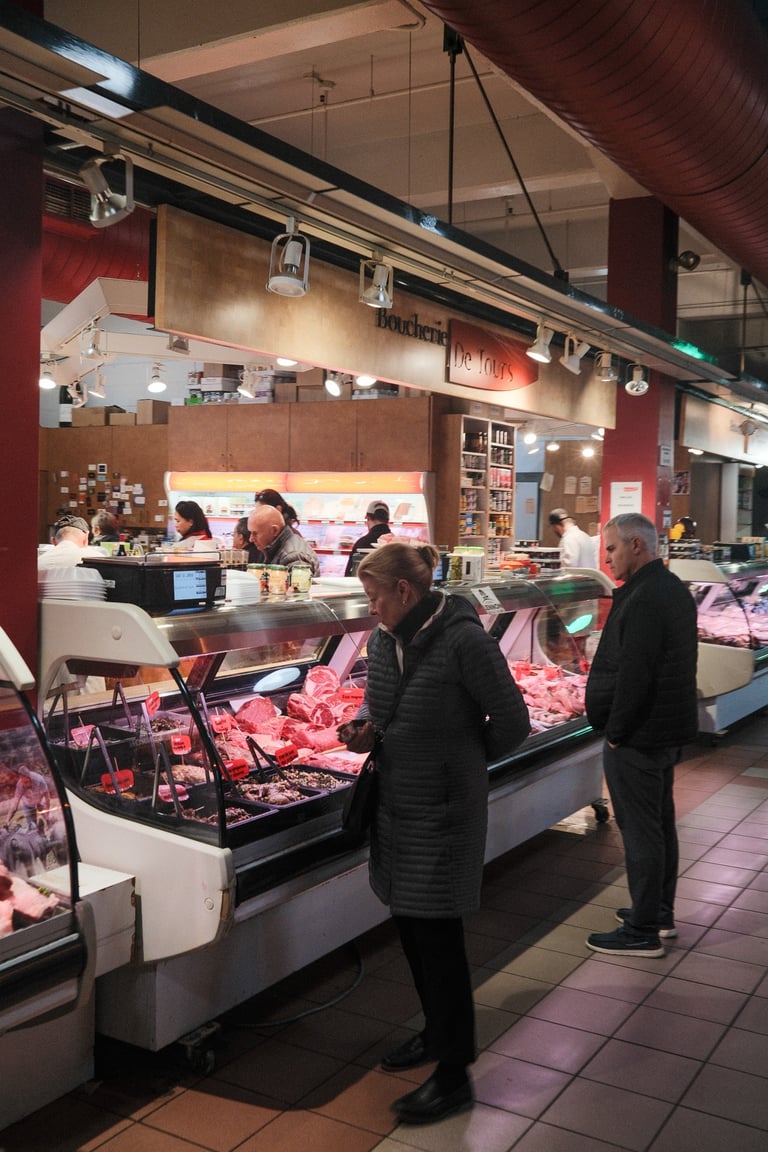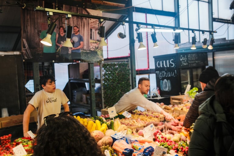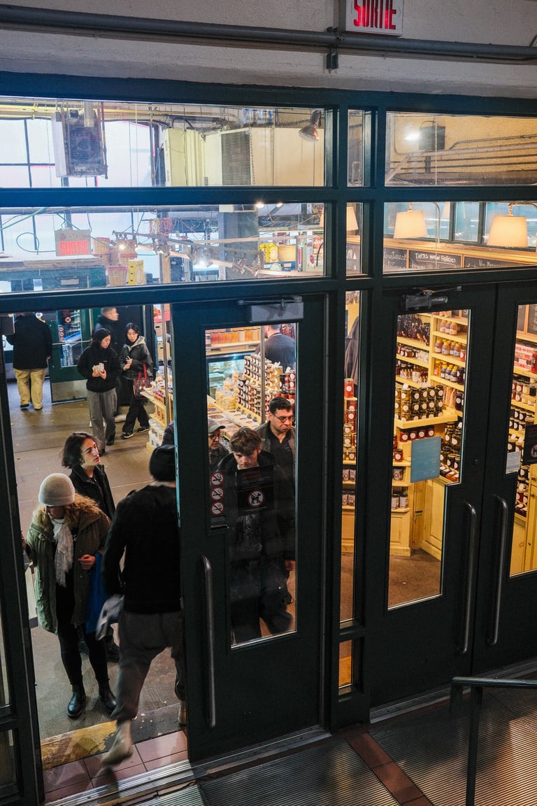 The sky was heavy, the light was soft, and the air carried that calm stillness that only gray days seem to have. But even under the clouds, Marché Atwater had its own kind of warmth — the sound of vendors greeting familiar faces, the smell of coffee drifting from the stalls, and flashes of color from fruits and flowers standing out against the muted sky.